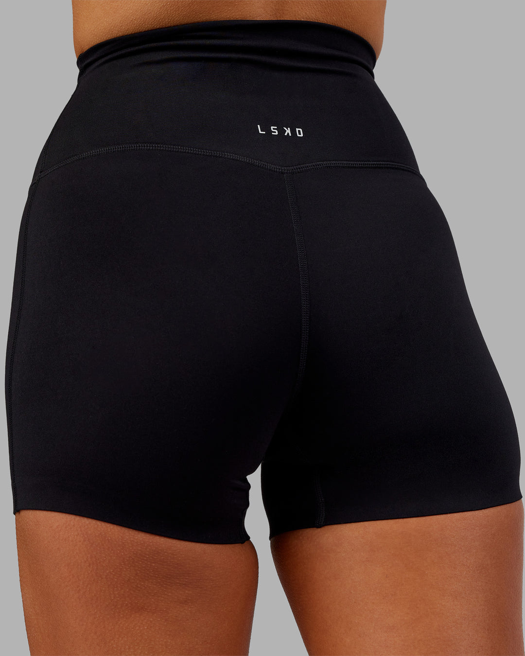Our Elixir X-Short Tights see a name upgrade in these Black Elixir Ultra High-Rise 4" Shorts. 12 months in the making, our design team has perfected the blend to bring real technical performance with a second skin feel. With no front seam and booty shaping contour panels, Elixir hugs all the right corners and curves without rolling down or riding up. Made with the ultra light and soft 'Zephyr' fabric.