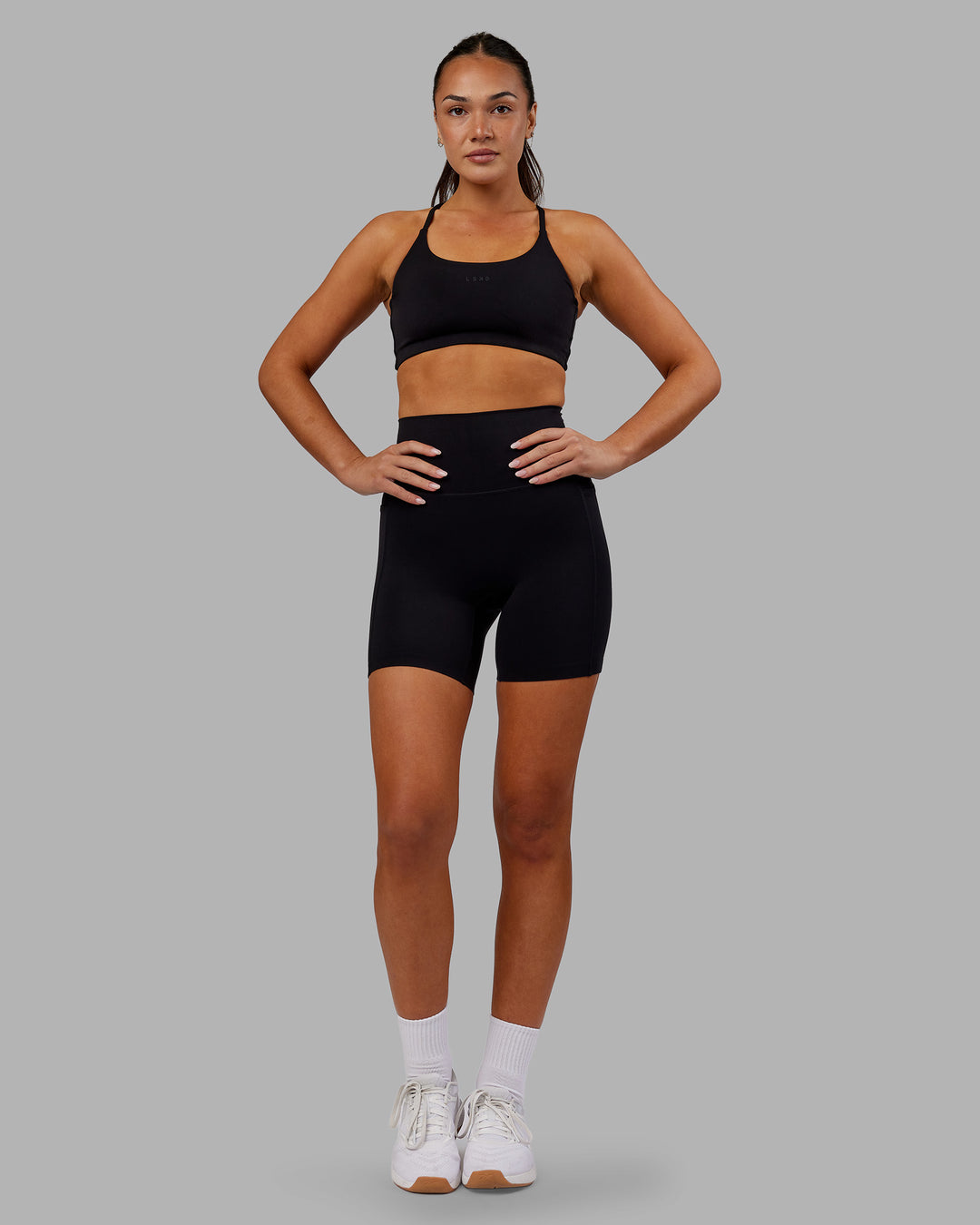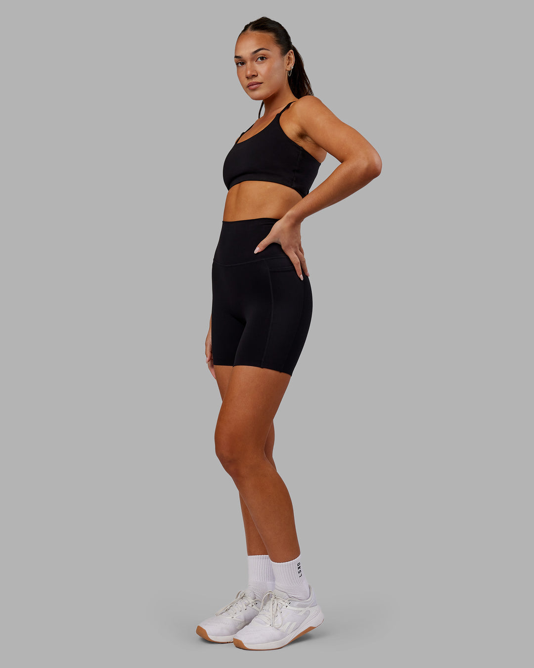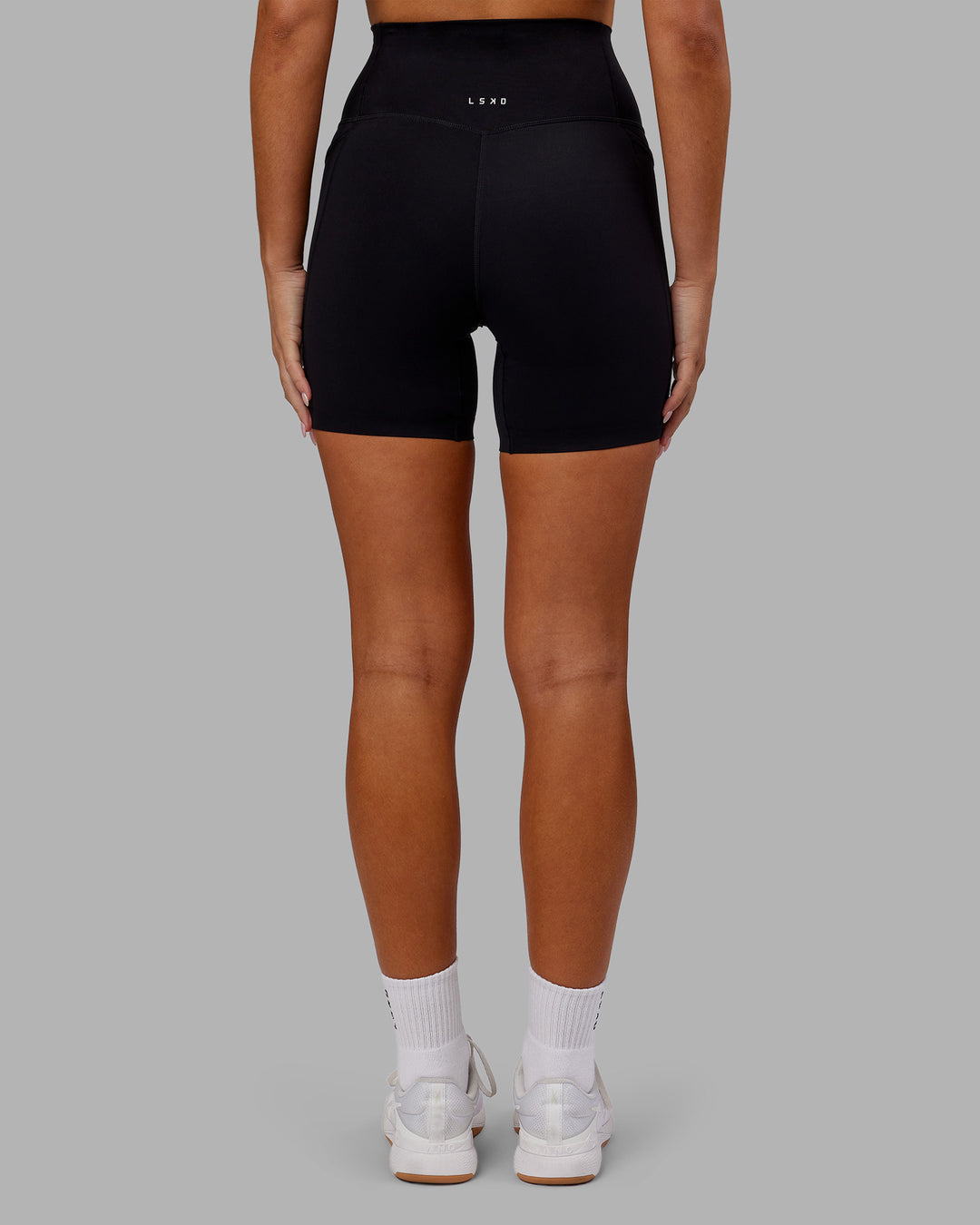 These Black Elixir Ultra High-Rise 6" Shorts with Pockets are the same Elixir Mid-Short Tights you know and love made with our ultra light and ultra soft Zephyr fabric, bringing real technical performance with a second-skin' feel. Featuring booty shaping contour panels, no front rise seam and now: dual phone pockets. Elixir hugs all the right corners and curves without rolling down, riding up or putting you at a functional loss.