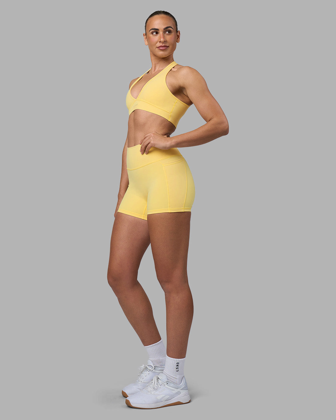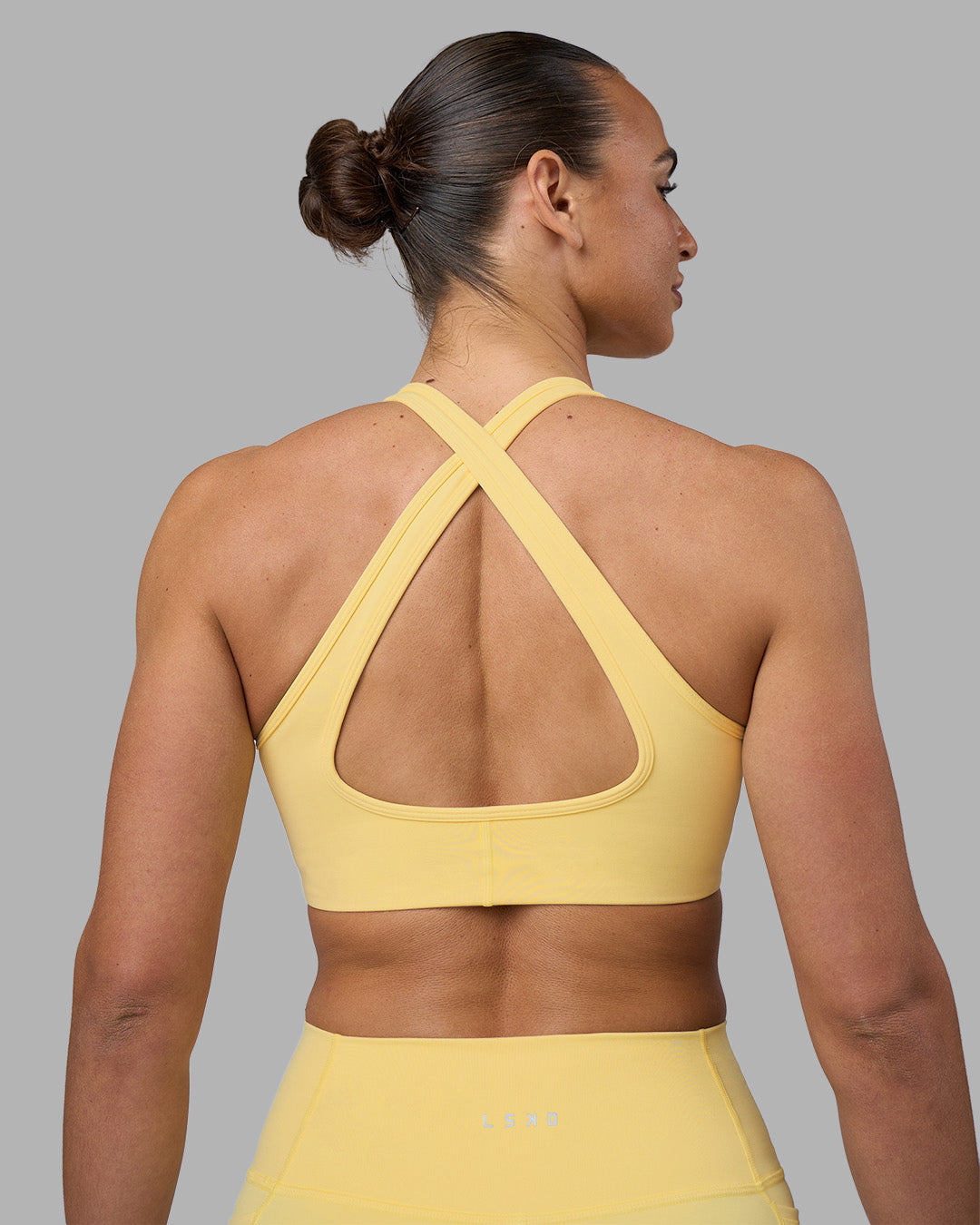Keep pushing. The Lemon Stamina Sports Bra features a cross-back strap design with removable cups and bonded hem band & edges for added support. Whilst being a lower support style with less coverage, this bra can still be put to work in a range of light to medium intensity workouts.